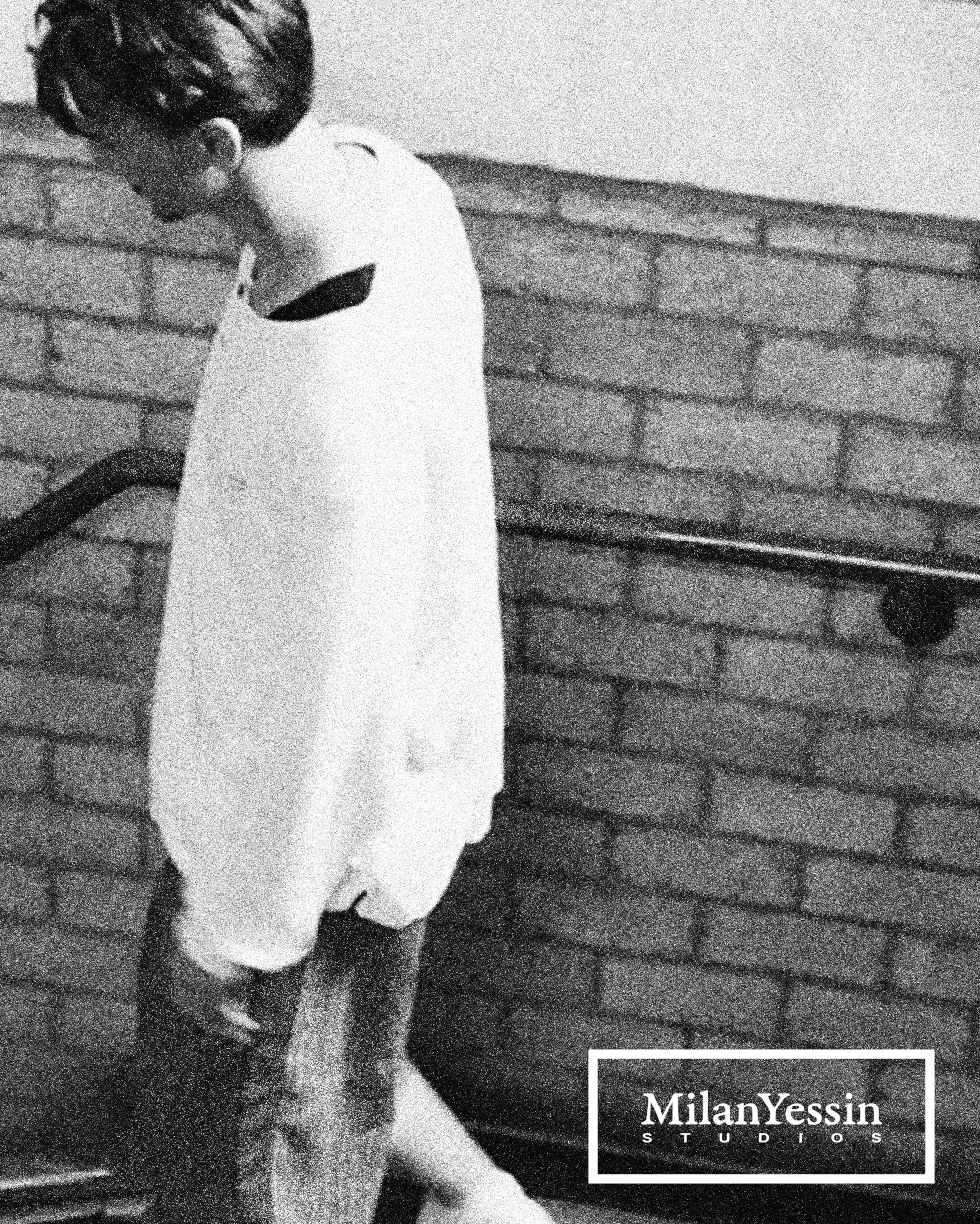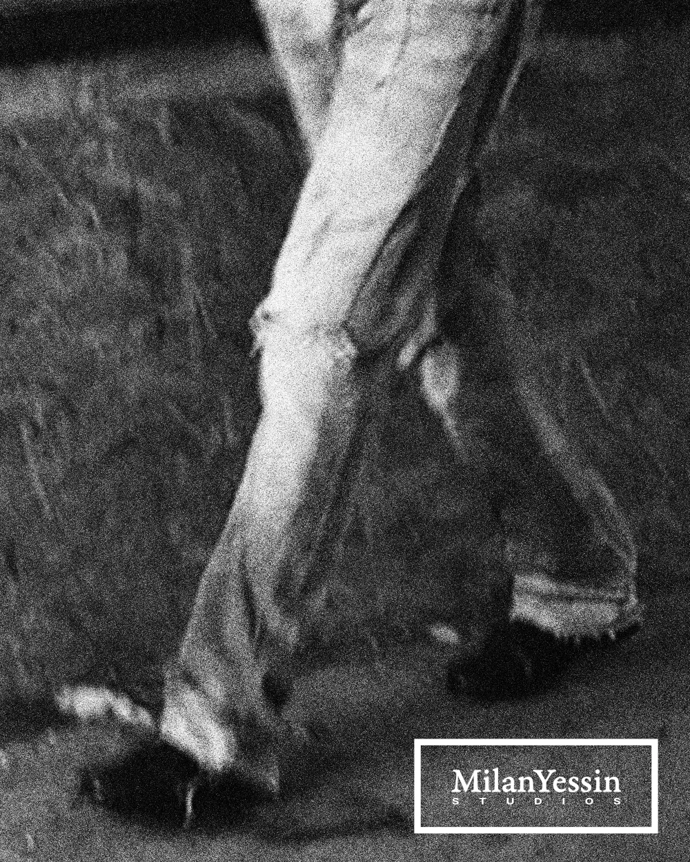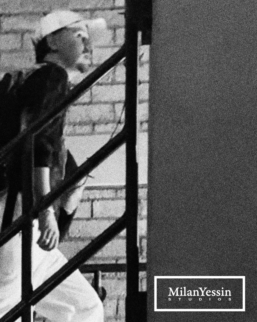 A series of teaser photographs for the first Milan Yessin pieces, capturing close-up black-and-white visuals with a new logo placed in the corner.