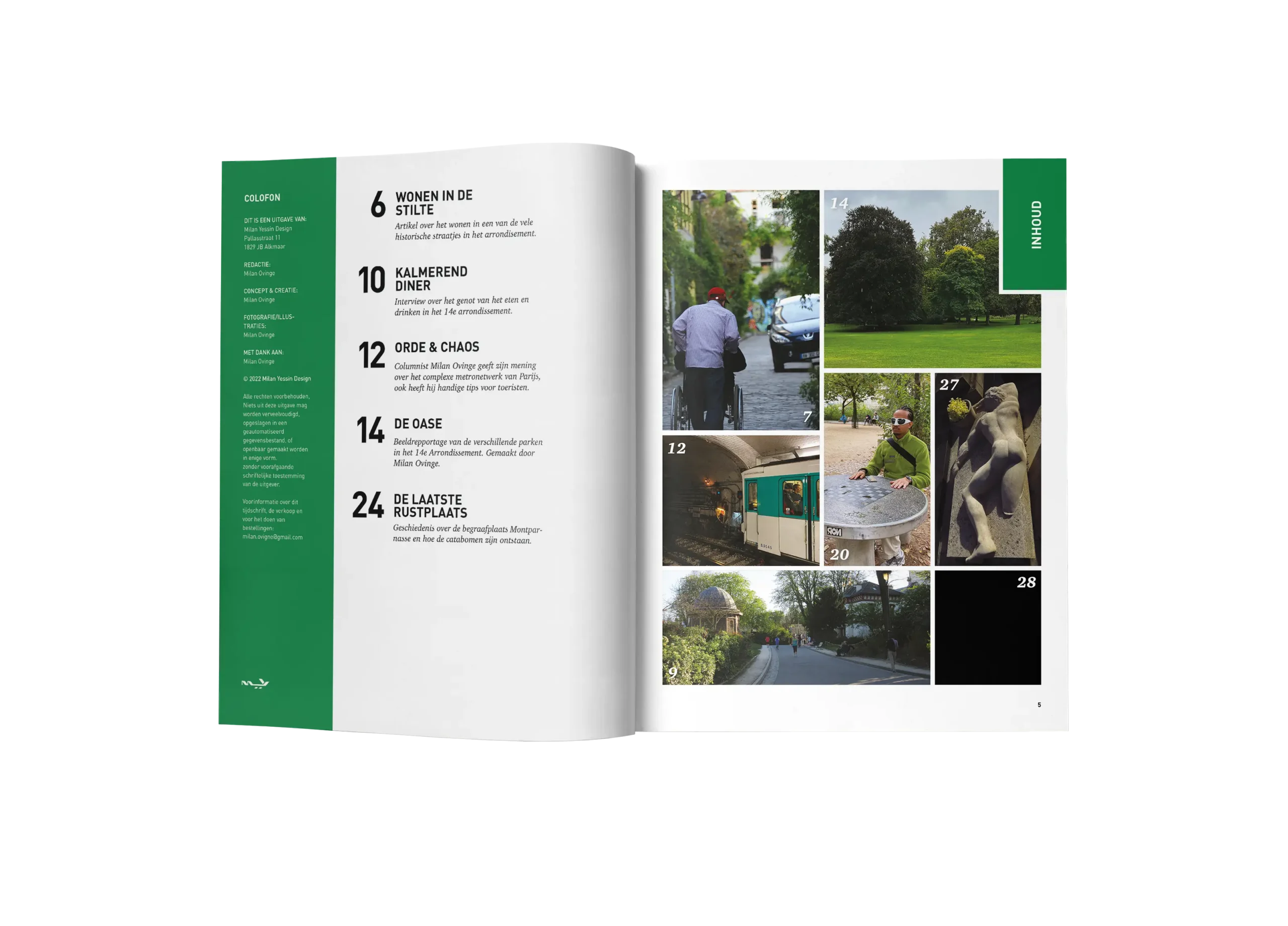 “Through photography, written articles, an interview, and a personal column, the magazine contrasts order and chaos — revealing how moments of rest quietly exist within the constant movement of Paris.”